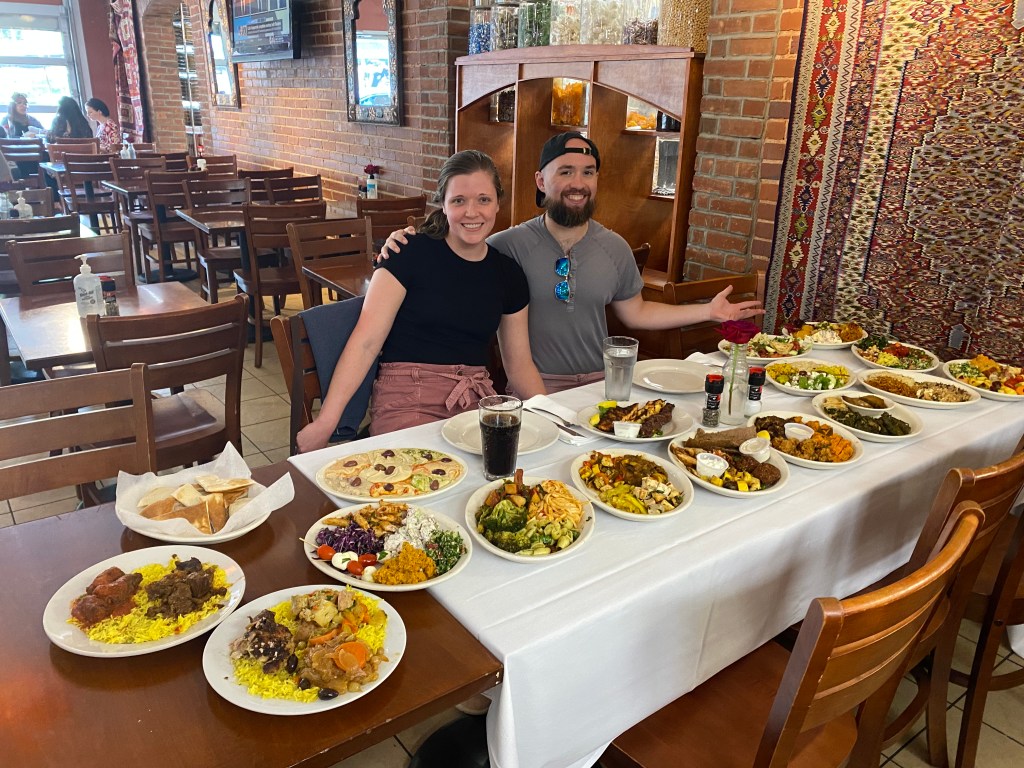Choosing The Story Venue made our catering decision easy-peasy. The Story is owned by Mediterranean Deli, a local restaurant in downtown Chapel Hill. While the venue does allow outside caterers, they also charge $1,000 more for the space if you go with someone else. So, because we like Med Deli’s menu, and because we’re trying to keep our budget below $10,000, we decided to use them as our caterer. And, bonus, they provide the bar service, too!