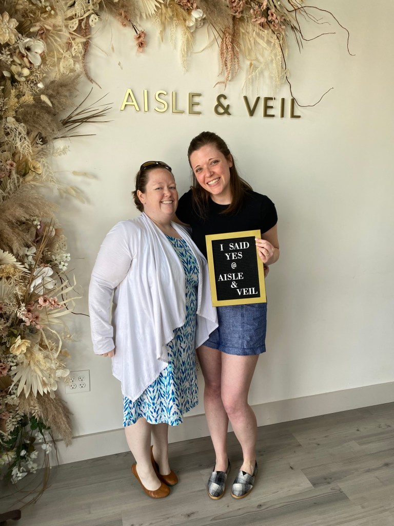 So, I knew all along I’d be going shopping in Georgia because that’s where my mom and sister live. I discovered an amazing shop online called Aisle & Veil, which has the best business model I have ever seen when it comes to bridal sales.