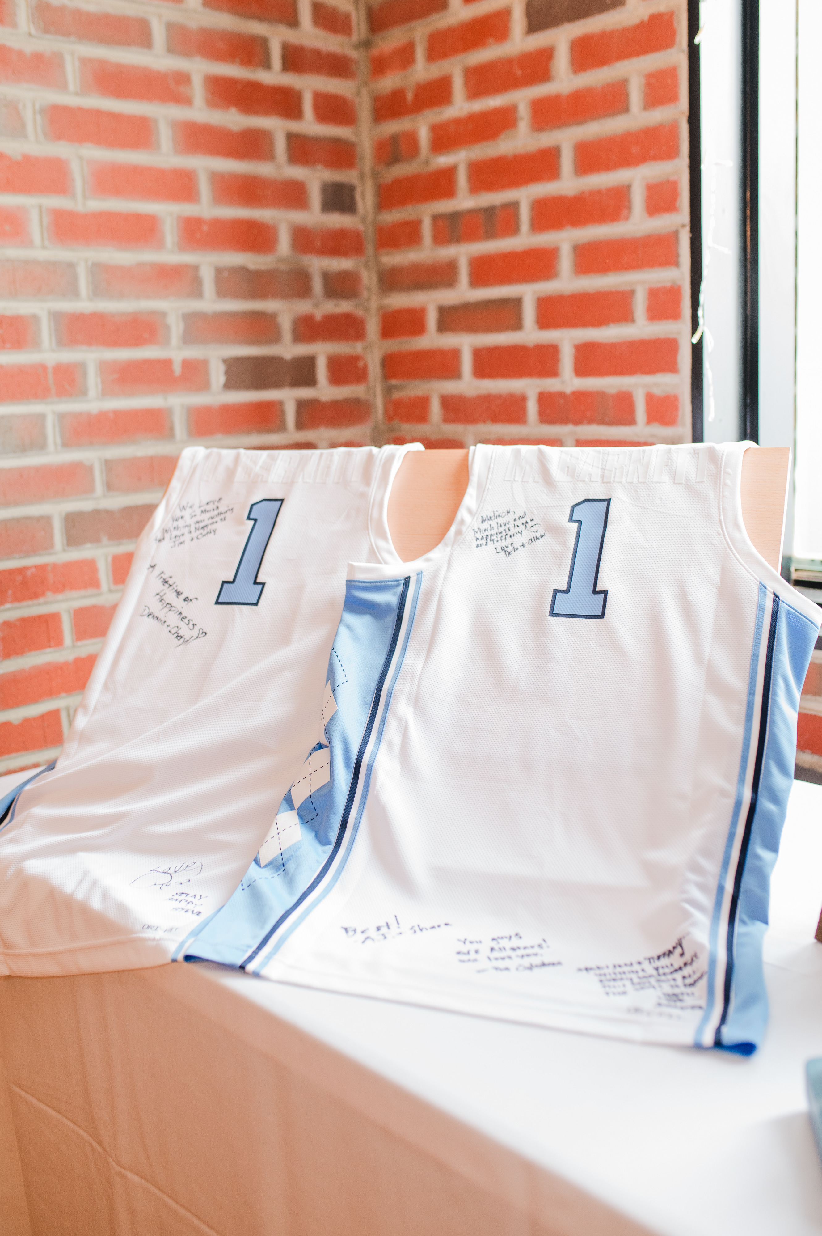 - Reception: basketball-themed guest book, Air Jordan dancing shoes, handmade centerpieces, first-date favors, signature cocktails, and games
